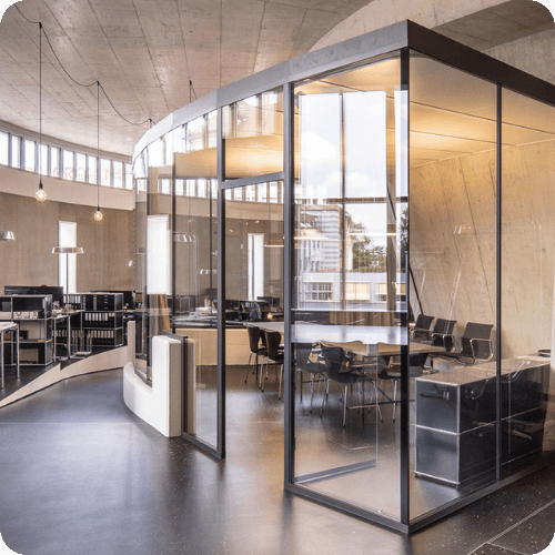 Räume gestalten, die begeistern. Setzen Sie auf unsere Trennwände, Raum-in-Raum-Systeme und Innenausbauten, die Ihre Visionen perfekt ergänzen. Gemeinsam realisieren wir massgeschneiderte, nachhaltige und flexible Raumlösungen für moderne Arbeitswelten.